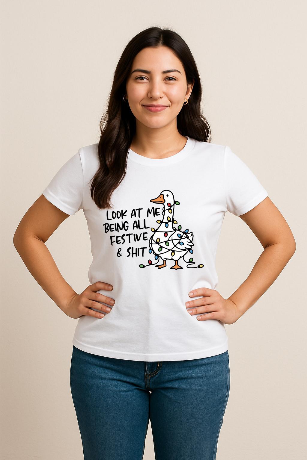 Bring the laughs this holiday season with this hilarious design! Featuring a goofy duck tangled in colourful Christmas lights, its the perfect mix of festive humor and chill attitude. This tee is perfect for parties, office humour or cozy weekends.