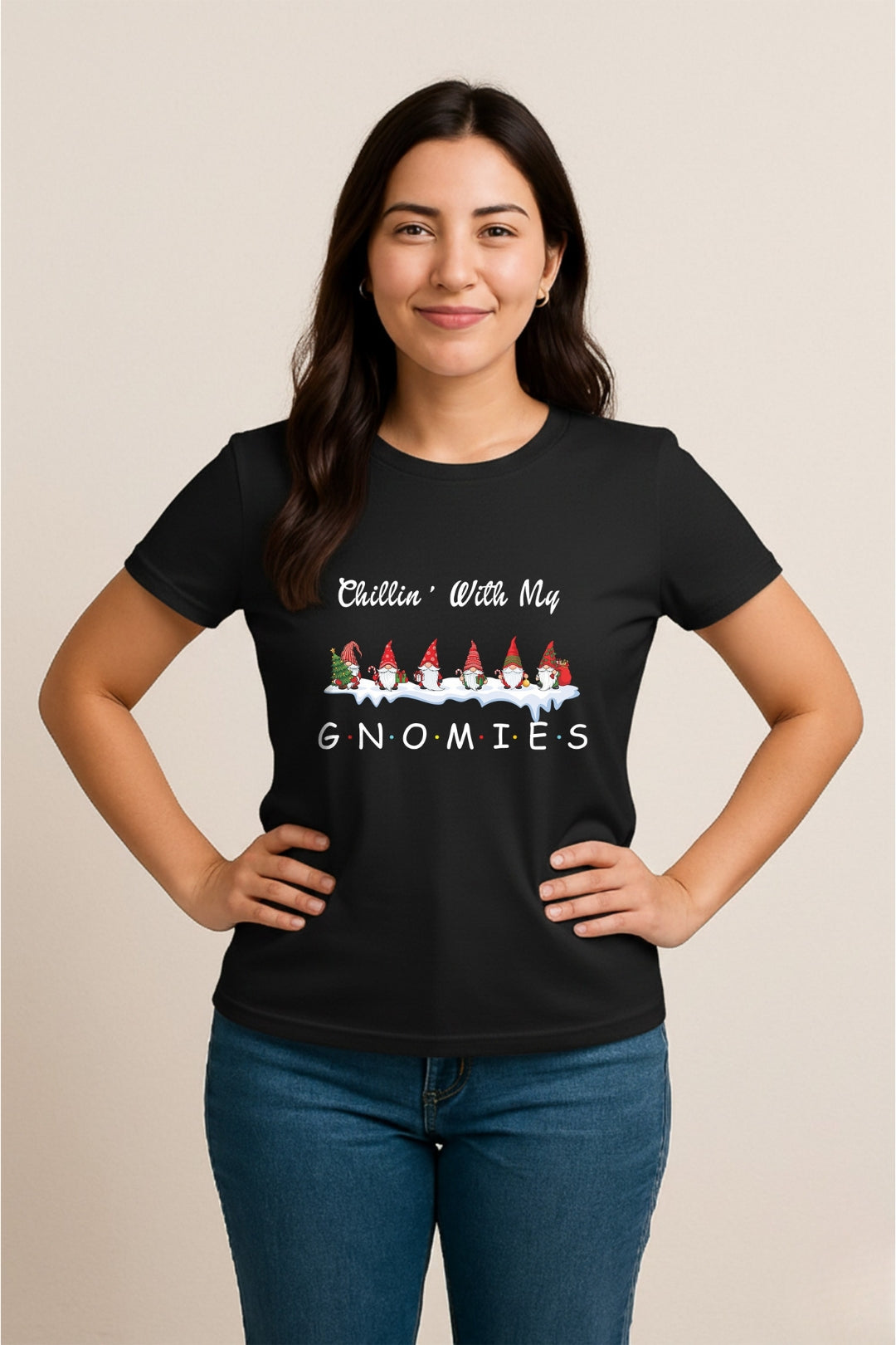 Featuring playful festive gnomes and a holiday vibe, this shirt is perfect for anyone who loves a little fun mixed with Christmas cheer